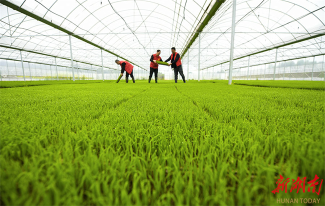 The photo, taken on March 30, shows technicians observing the growth of rice seedlings at an early-season rice cultivation center in Zhongkang Village, Guanling Town, Changning City. As temperatures gradually rise, farmers across the province are seizing the farming season to engage in spring farming, presenting a vibrant scene in the fields. (Photo/Zhou Xiuyuchun)