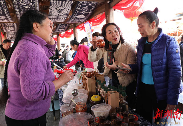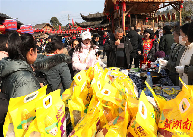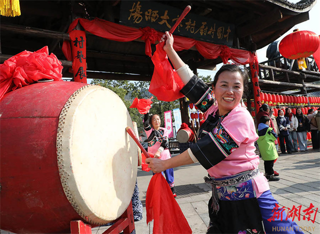 The photo, taken on January 24, shows performers staging art performances at a rural fair in Qianling Town, Baojing County. As the Spring Festival approaches, the area will host a series of themed markets and public performances to foster a vibrant festive atmosphere. (Photo/Yu Caihua)