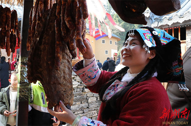 The photo, taken on January 24, shows a villager purchasing Spring Festival goods at a rural fair in Qianling Town, Baojing County. As the Spring Festival approaches, the area will host a series of themed markets and public performances to foster a vibrant festive atmosphere. (Photo/Yu Caihua)