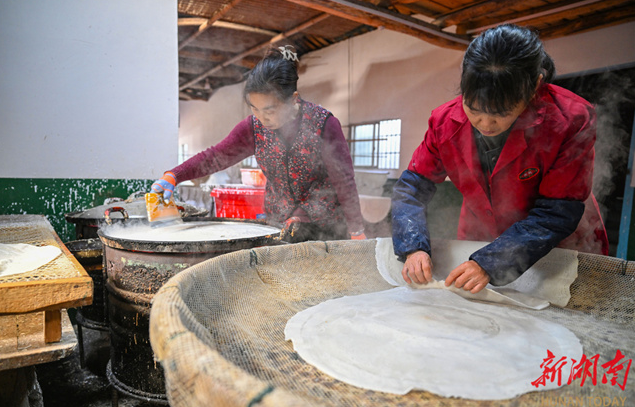 The photo, taken on January 5, shows villagers making buckwheat bean curd sheets in a workshop at Baimamiao Village, Yanjing Town, Lixian County. Every winter, locals have the tradition to make buckwheat bean curd sheets, which serve both as daily fare and as a treat for guests. As the Spring Festival approaches, numerous workshops and villagers have begun producing buckwheat bean curd sheets, turning this smooth, chewy, and nutritious local specialty into the warmest festive flavor in people's memories. Currently handmade buckwheat bean curd sheets not only evoke a sense of nostalgia, but have also developed into a distinctive industry that boosts farmers' income. (Photo/Guo Lilaing, Hunan Daily)