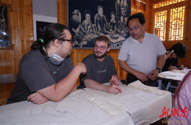 On April 19, 15 international students from the Central Academy of Fine Arts in Beijing, hailing from nine countries including the United States, Russia, Italy, South Korea, and Laos, visited Paibi Banli Village in Shuanglong Town, Huayuan County, in the Xiangxi Tujia and Miao Autonomous Prefecture. The students immersed themselves in traditional Miao batik techniques under the guidance of Shi Jiezhong, a county-level inheritor of the Miao batik cultural heritage, experiencing the unique charm of fine traditional Chinese culture.
