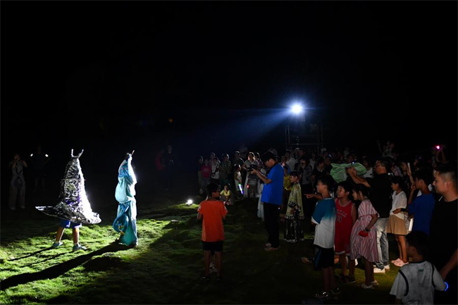Children perform a drama at the Dayuan Center for Community Arts and Culture in Dayuan Village of Ningyuan County, central China's Hunan Province, Aug. 23, 2025. (Xinhua/Chen Zhenhai)