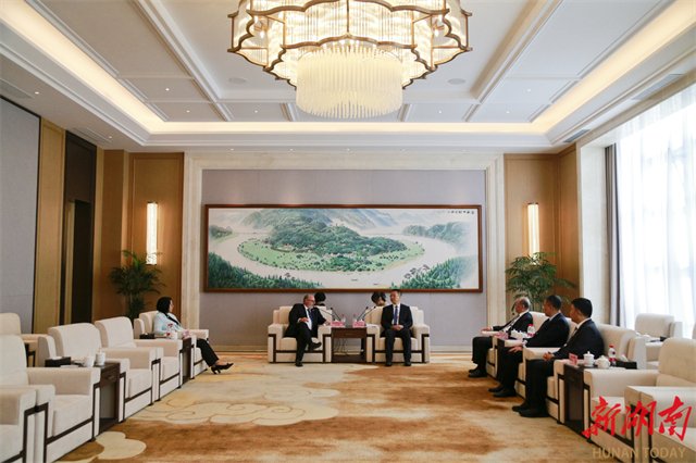 Xie Weijiang, deputy secretary of the CPC Hunan Provincial Committee, met in Yueyang with Alberto Blanco Silva, Cuban ambassador to China, and his entourage on the afternoon of November 4, 2025.