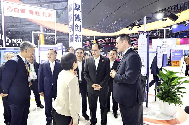 Governor Mao visits the Novartis Exhibition Booth.