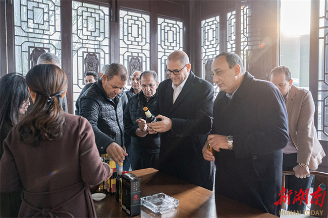 On December 22, a delegation of industrial and business personages from Egypt visited the Longpai Food Co., Ltd. in Xiangtan National Economic and Technological Development Zone, experiencing the new vitality of the time-honored Chinese band. The delegation came to visit Hunan at the invitation of the International Department of the CPC Central Committee. The photo shows delegates learning about the production process of Longpai food. (Photo/Li Jian, Hunan Daily)